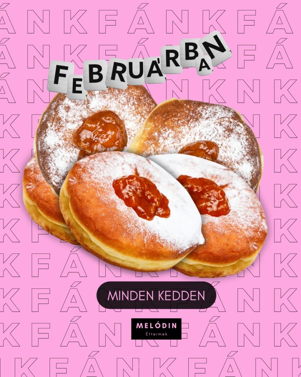 A Melódin Étterem minden kedden házi farsangi fánkokkal várja vendégeit, házi baracklekvárral és valódi csokoládéból készült krémmel. Február 16-tól farsangi latte is elérhető, így az ízek és italok egyaránt ünnepi hangulatot teremtenek.