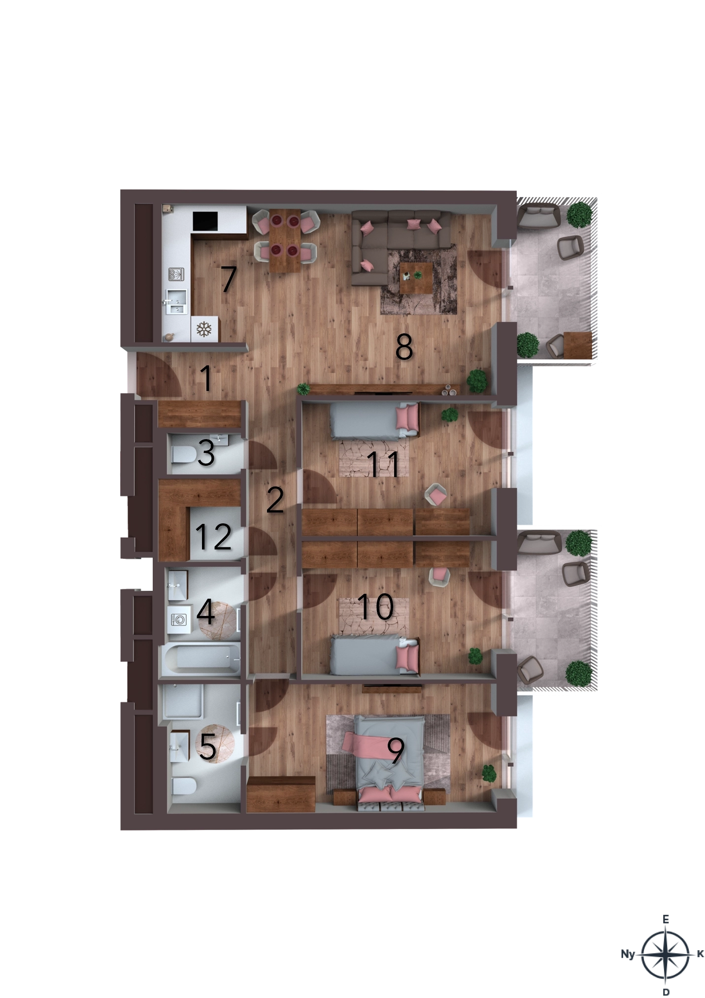 Az alaprajzon található bútorok illusztrációk, felszereltség műszaki leírás szerint.
